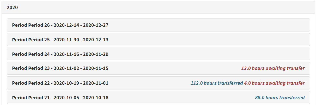 - Select a pay period that contains approved hours awaiting transfer.